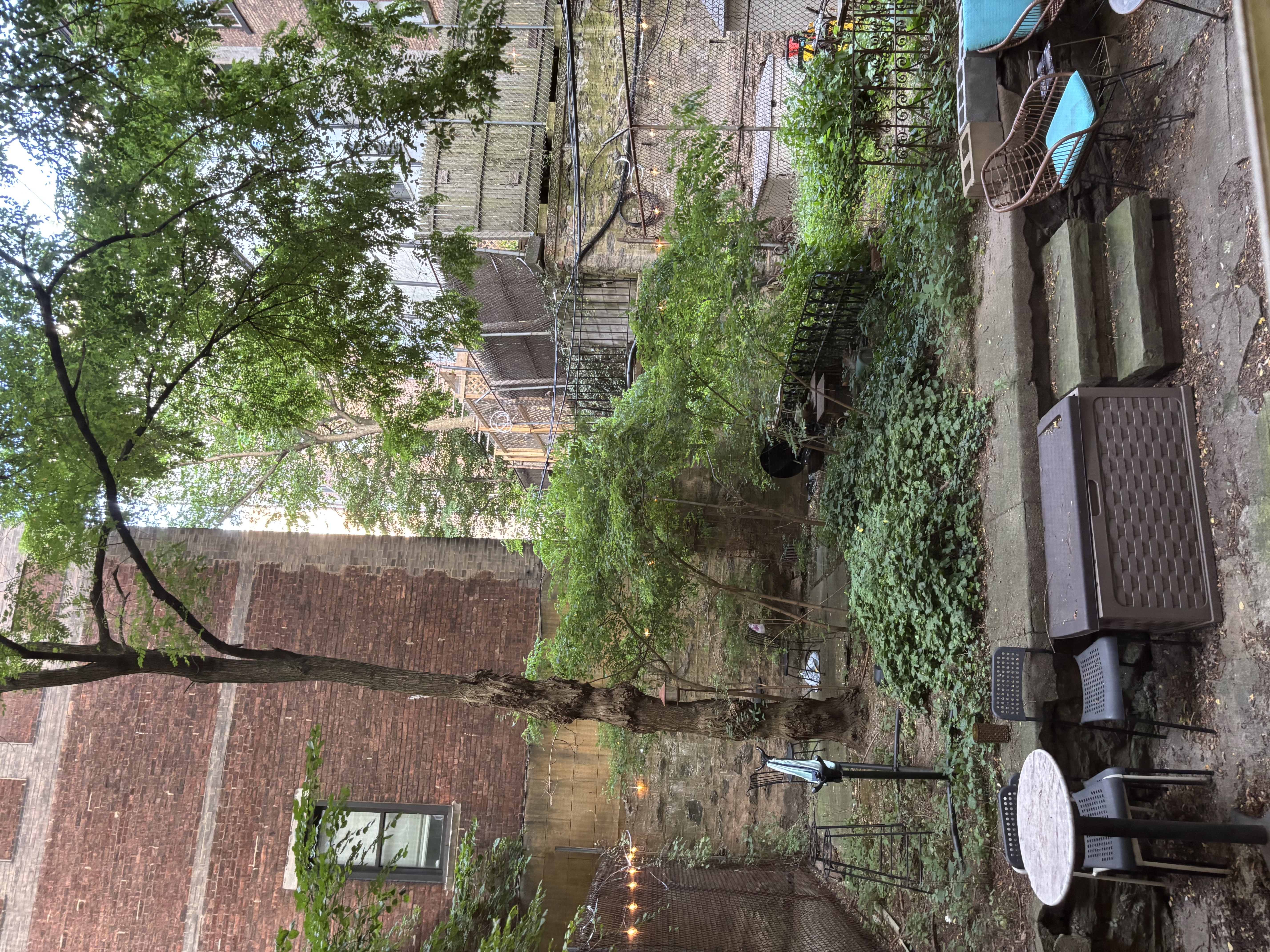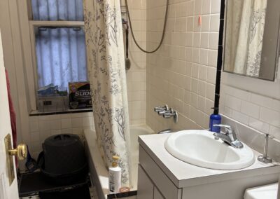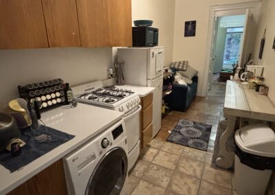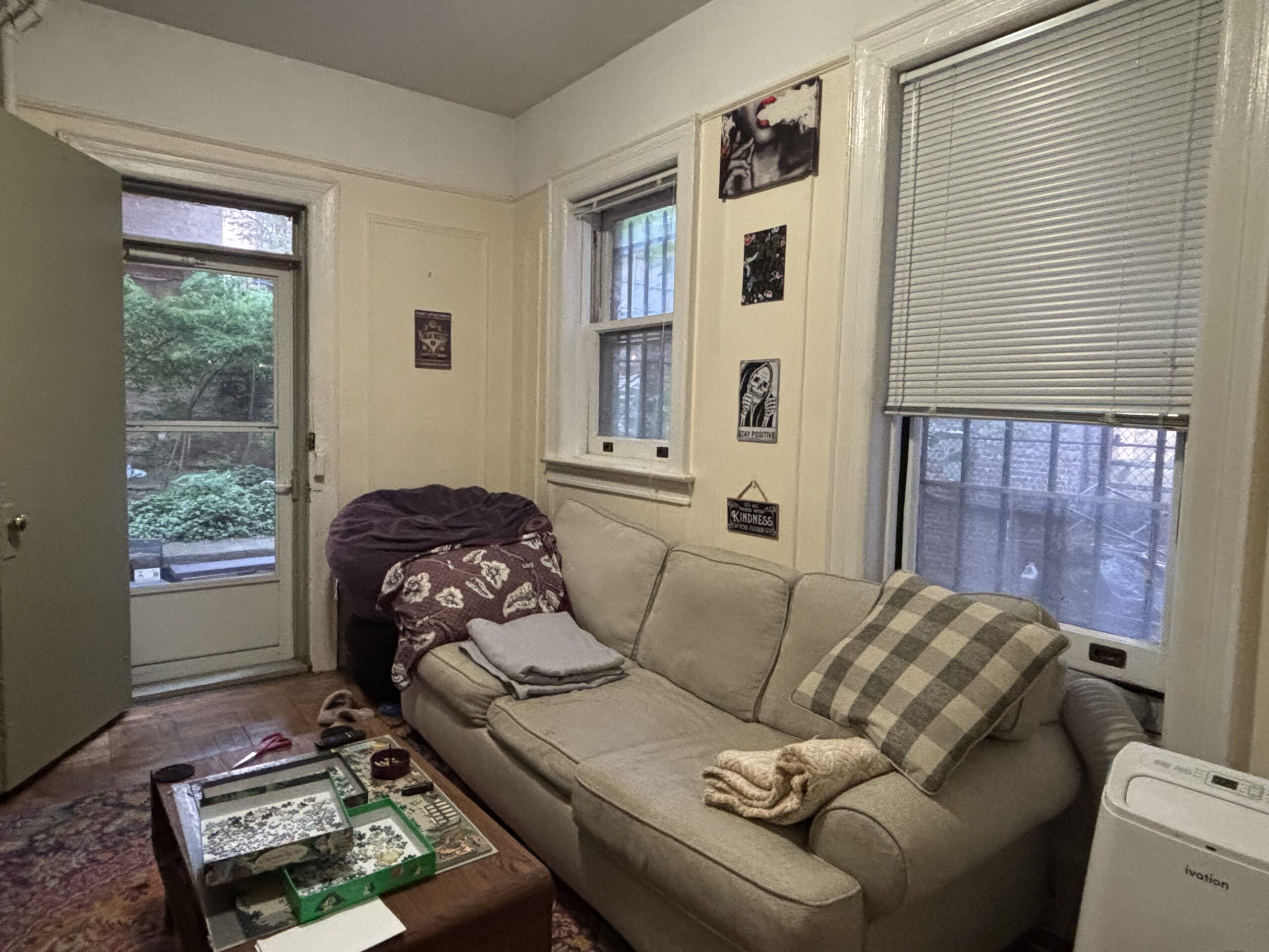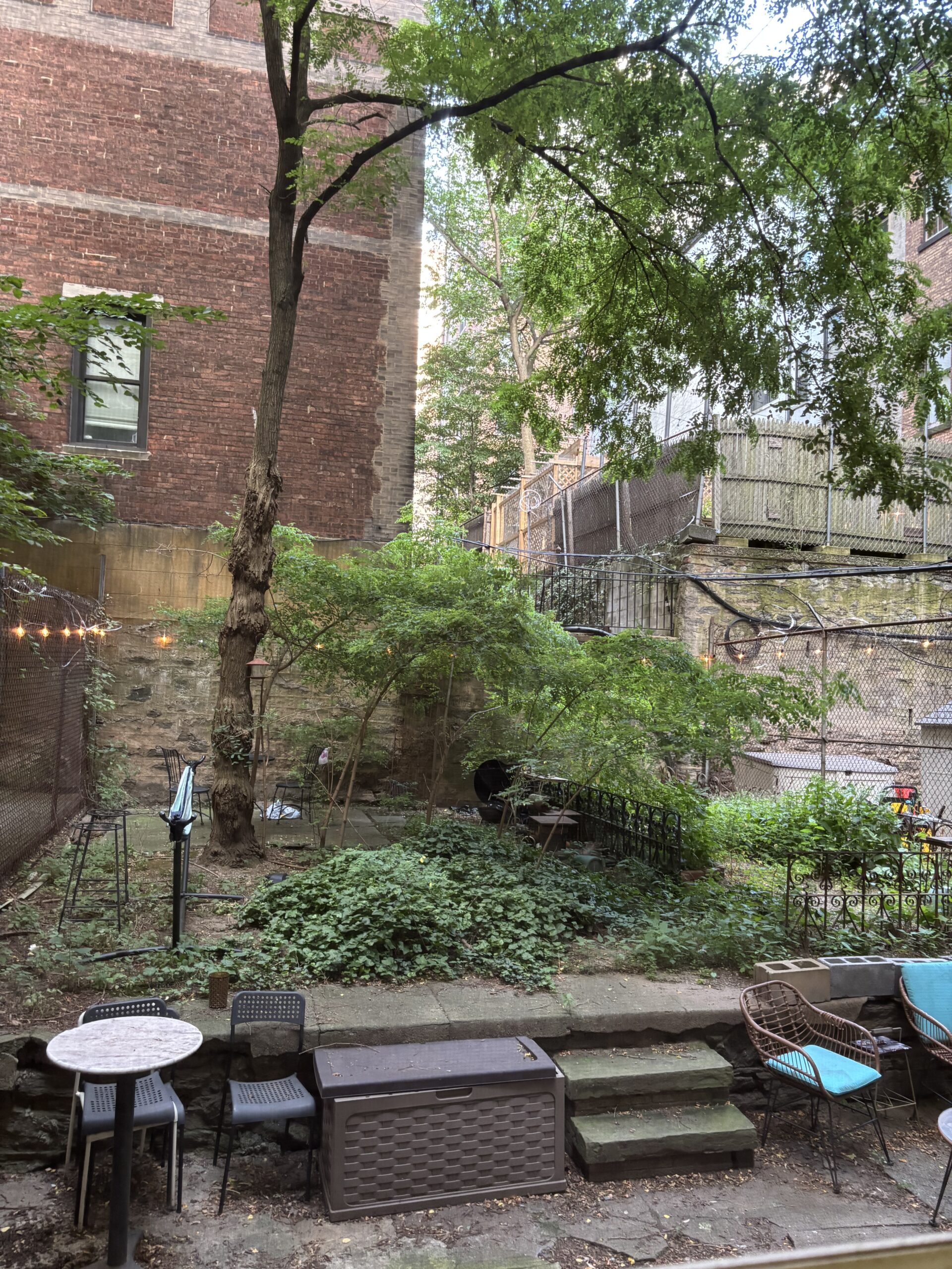 This large three bedroom retreat is the garden apartment of our flagship limestone Riverside Drive mansion. Full bath, kitchen with living area and in-unit laundry, three well-isolated, large, well-lit bedrooms with a total of five windows/glass doors to the yard, a huge garden with raised beds, acres of daylight, this sweet and private place for three is just 30 seconds by foot from the elms of Riverside Park, and one block from Broadway.